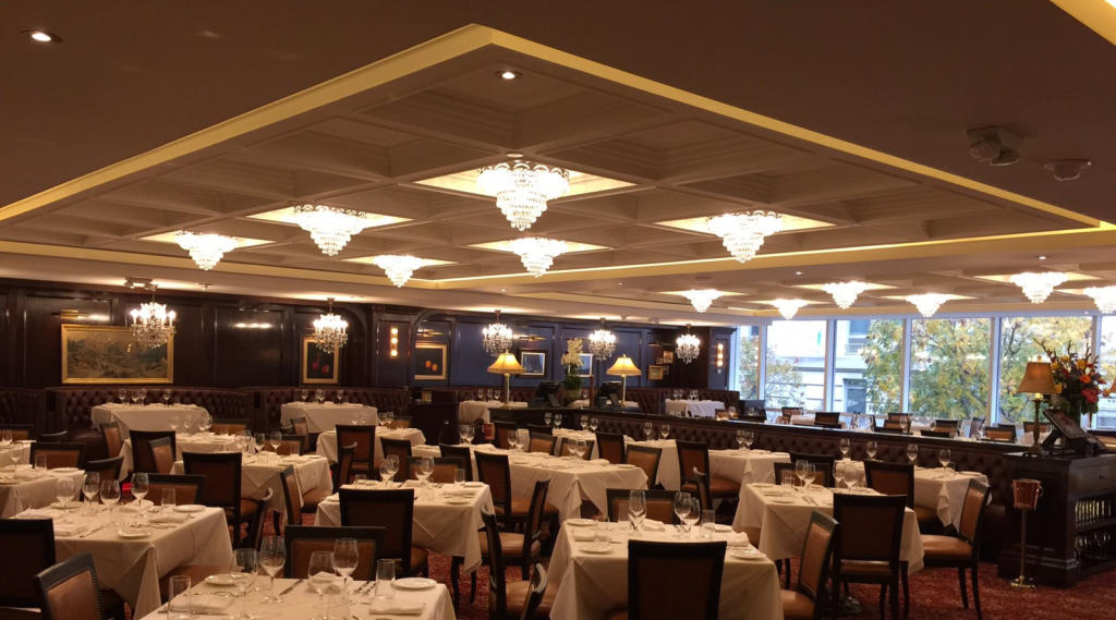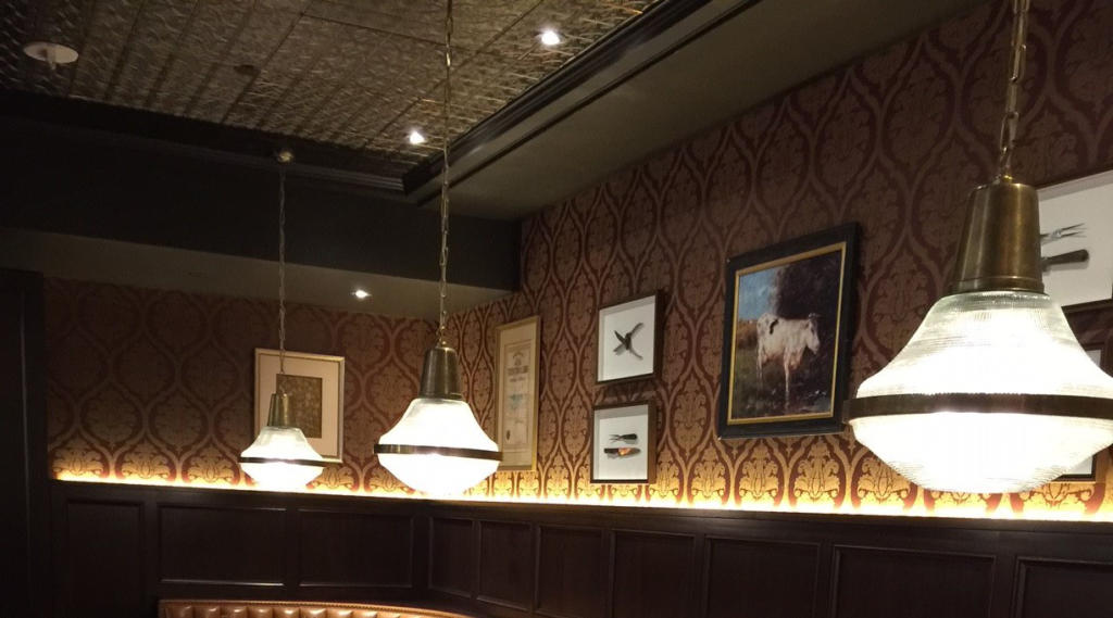 Complete fit out of the restaurant space to include the installation of plaster moulding at the ceiling to give it a vaulted look. The vaults were then infilled with an Armstrong 2’x2′ tin ceiling.
